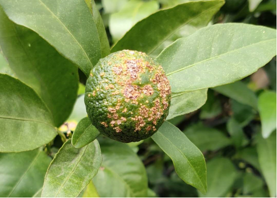近期柑橘園又發(fā)現(xiàn)有潰瘍病情況,潰瘍病防控一定要在早期,接下來(lái)夏季高溫多雨,特別是下雨后,臺(tái)風(fēng)天,潰瘍病傳播非??欤F(xiàn)在重點(diǎn)要注意的是預(yù)防潰瘍病上果。